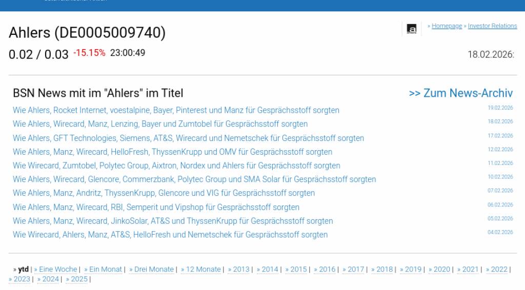 Ahlers am 18.2. -34,85%, Volumen 0% normaler Tage