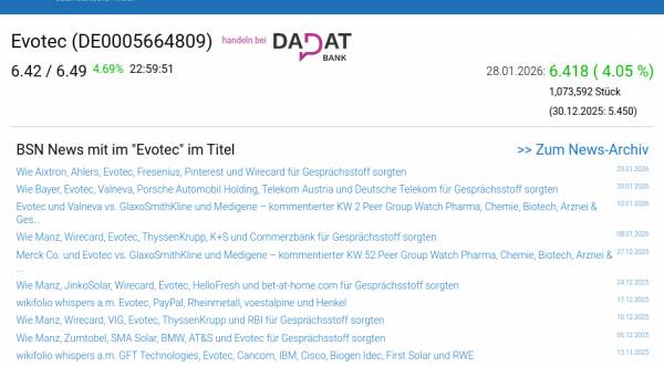 Evotec am 28.1. 4,05%, Volumen 144% normaler Tage