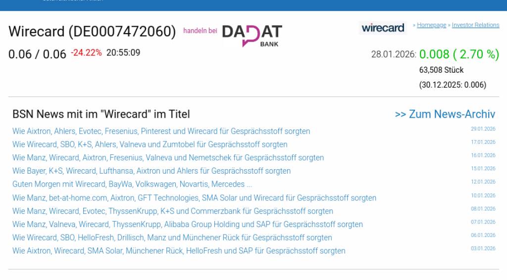 Wirecard am 28.1. 2,70%, Volumen 62% normaler Tage