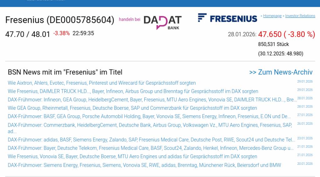 Fresenius am 28.1. -3,80%, Volumen 105% normaler Tage