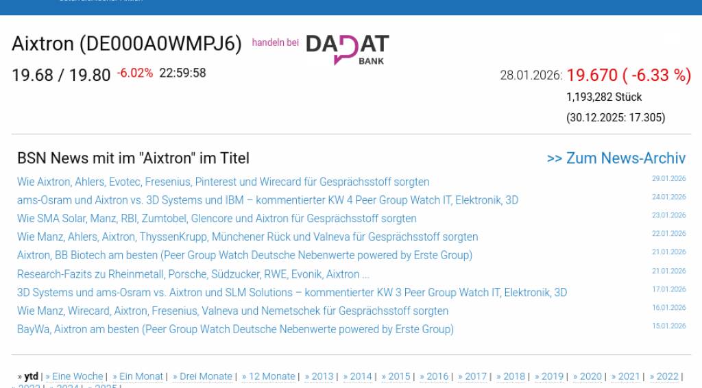 Aixtron am 28.1. -6,33%, Volumen 147% normaler Tage