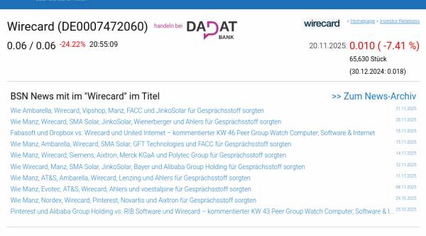 Wirecard am 20.11. -7,41%, Volumen 51% normaler Tage