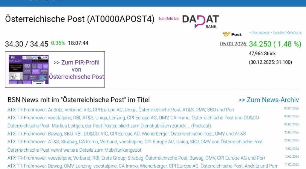 Österreichische Post am 5.3. 1,48%, Volumen 121% normaler Tage