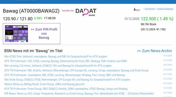 Bawag am 10.12. 1,49%, Volumen 65% normaler Tage