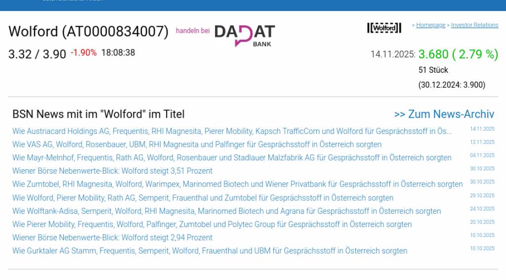 Wolford am 14.11. 2,79%, Volumen 7% normaler Tage