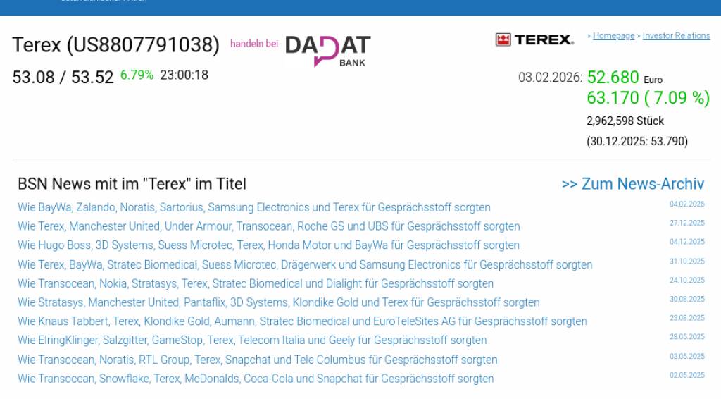 Terex am 3.2. 7,09%, Volumen 160% normaler Tage