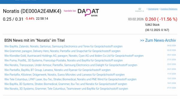 Noratis am 3.2. -11,56%, Volumen 27% normaler Tage