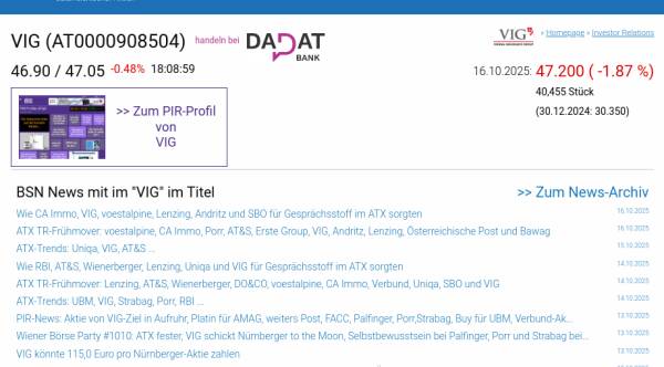 VIG am 16.10. -1,87%, Volumen 97% normaler Tage