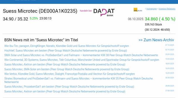 Suess Microtec am 6.10. 4,50%, Volumen 273% normaler Tage
