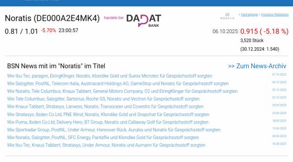 Noratis am 6.10. -5,18%, Volumen 67% normaler Tage