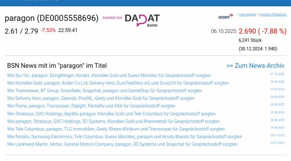 paragon am 6.10. -7,88%, Volumen 244% normaler Tage