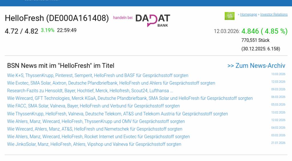 HelloFresh am 12.3. 4,85%, Volumen 72% normaler Tage