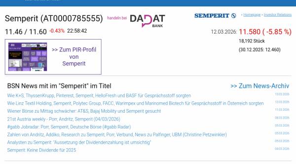 Semperit am 12.3. -5,85%, Volumen 255% normaler Tage