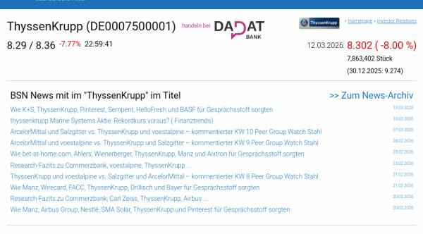 ThyssenKrupp am 12.3. -8,00%, Volumen 232% normaler Tage