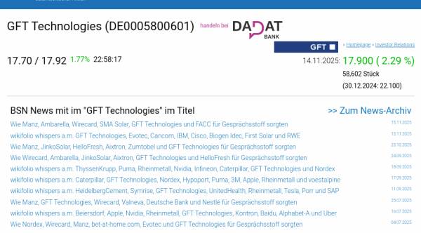 GFT Technologies am 14.11. 2,29%, Volumen 74% normaler Tage