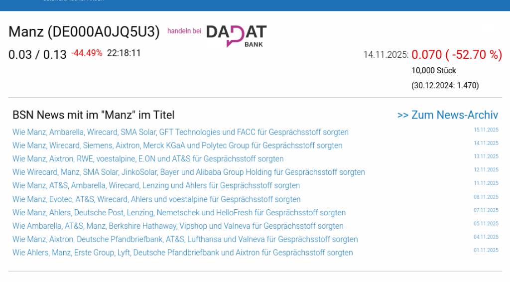 Manz am 14.11. -52,70%, Volumen 88% normaler Tage