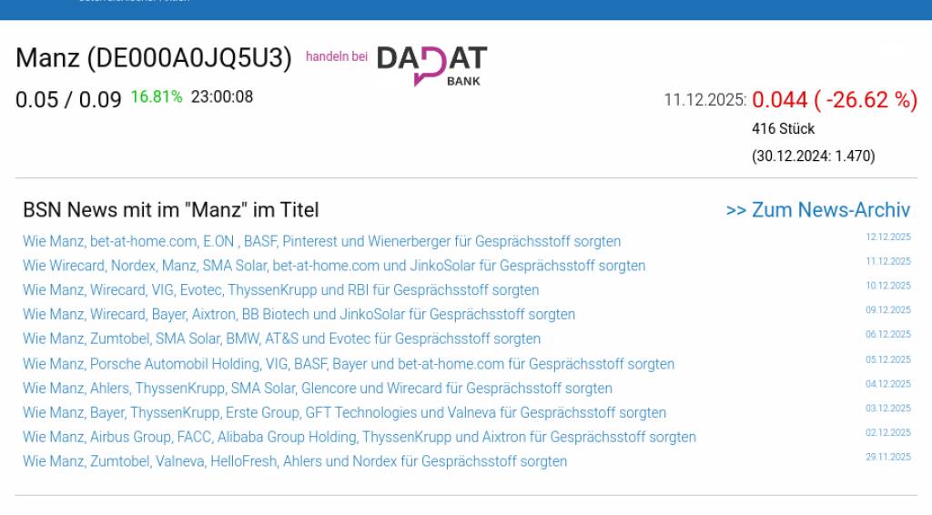 Manz am 11.12. -26,62%, Volumen 3% normaler Tage