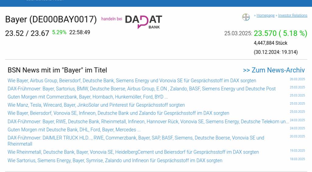 Bayer am 25.3. 5,18%, Volumen 109% normaler Tage