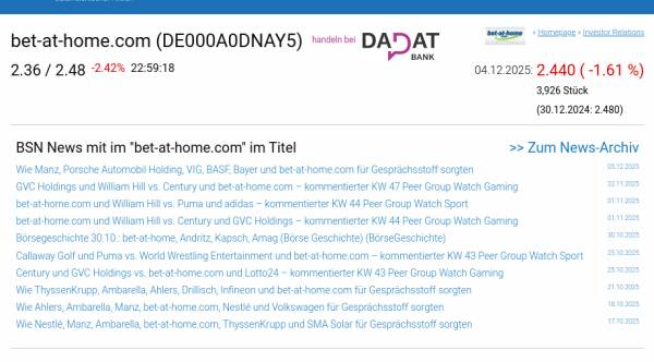 bet-at-home.com am 4.12. -1,61%, Volumen 203% normaler Tage