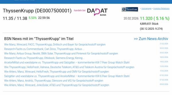 ThyssenKrupp am 20.2. 5,16%, Volumen 152% normaler Tage
