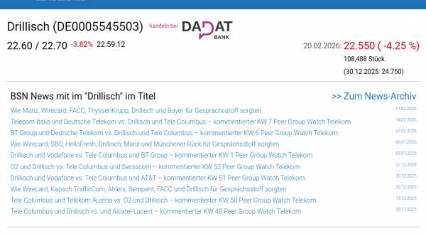 Drillisch am 20.2. -4,25%, Volumen 216% normaler Tage