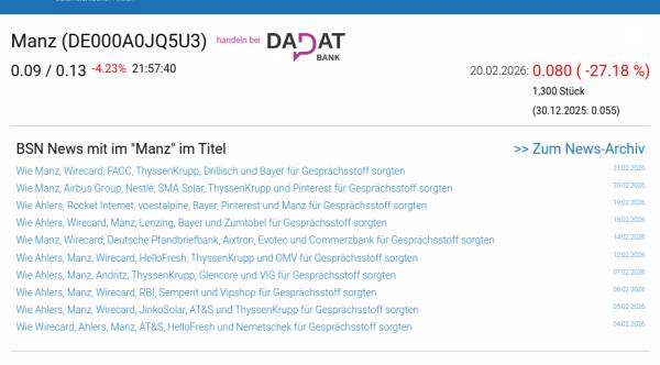 Manz am 20.2. -27,18%, Volumen 25% normaler Tage