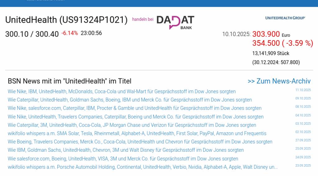 UnitedHealth am 10.10. -3,59%, Volumen 103% normaler Tage