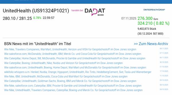 UnitedHealth am 7.11. 0,82%, Volumen 76% normaler Tage