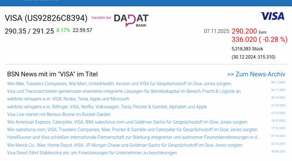 VISA am 7.11. -0,28%, Volumen 83% normaler Tage