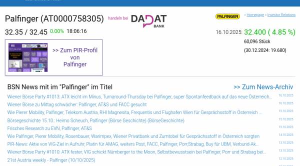 Palfinger am 16.10. 4,85%, Volumen 184% normaler Tage