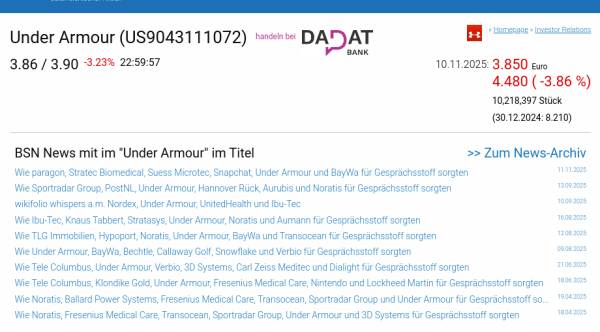 Under Armour am 10.11. -3,86%, Volumen 80% normaler Tage