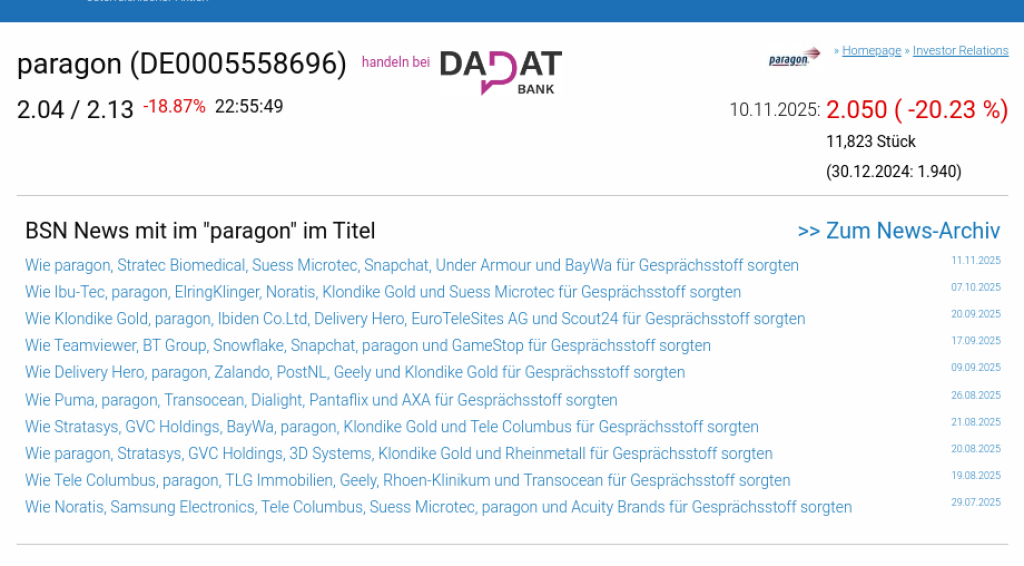 paragon am 10.11. -20,23%, Volumen 465% normaler Tage