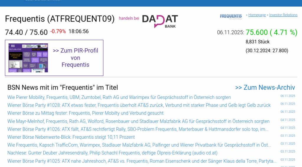 Frequentis am 6.11. 4,71%, Volumen 119% normaler Tage