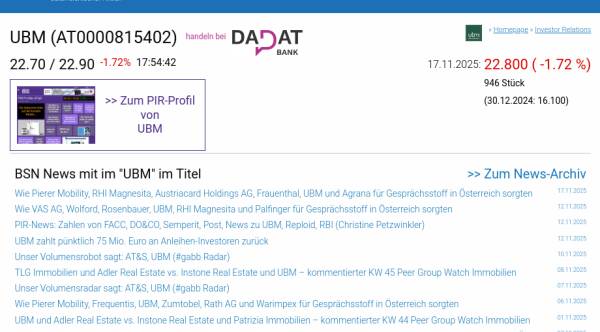 UBM am 17.11. -1,72%, Volumen 28% normaler Tage