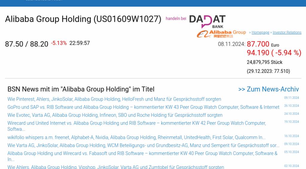Alibaba Group Holding am 8.11. -5,94%, Volumen 140% normaler Tage