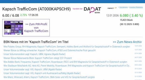 Kapsch TrafficCom am 12.1. 3,40%, Volumen 232% normaler Tage
