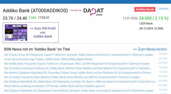 Addiko Bank am 12.1. 2,13%, Volumen 80% normaler Tage
