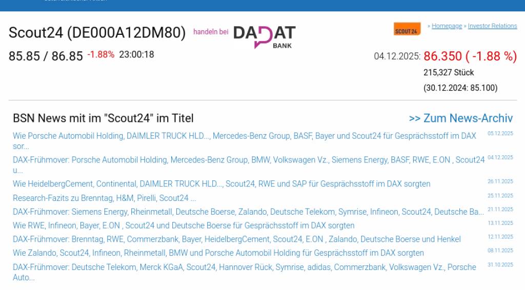 Scout24 am 4.12. -1,88%, Volumen 116% normaler Tage