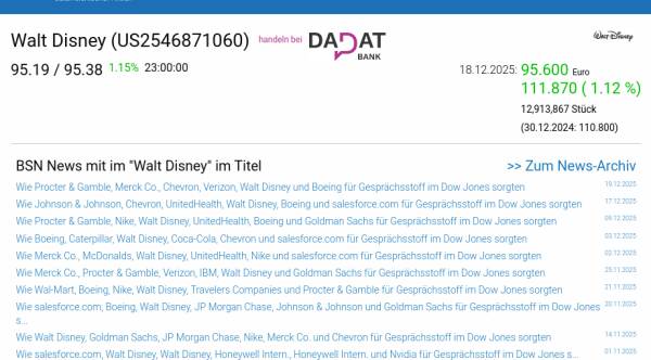Walt Disney am 18.12. 1,12%, Volumen 133% normaler Tage