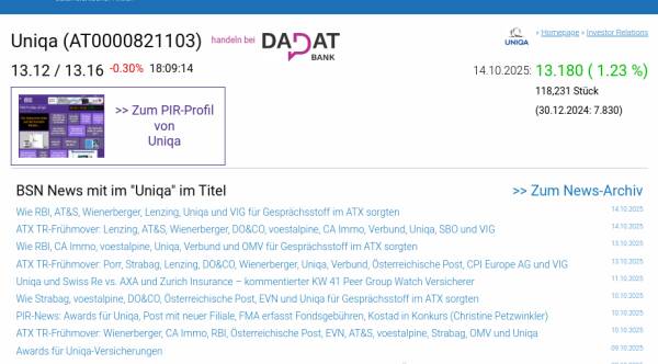Uniqa am 14.10. 1,23%, Volumen 68% normaler Tage