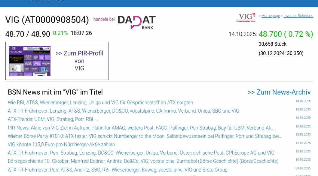 VIG am 14.10. 0,72%, Volumen 73% normaler Tage