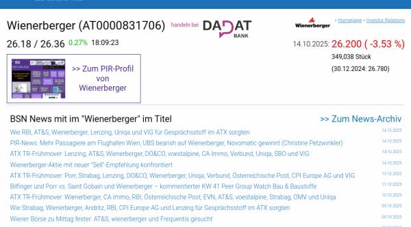 Wienerberger am 14.10. -3,53%, Volumen 160% normaler Tage