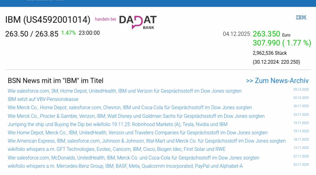 IBM am 4.12. 1,77%, Volumen 61% normaler Tage