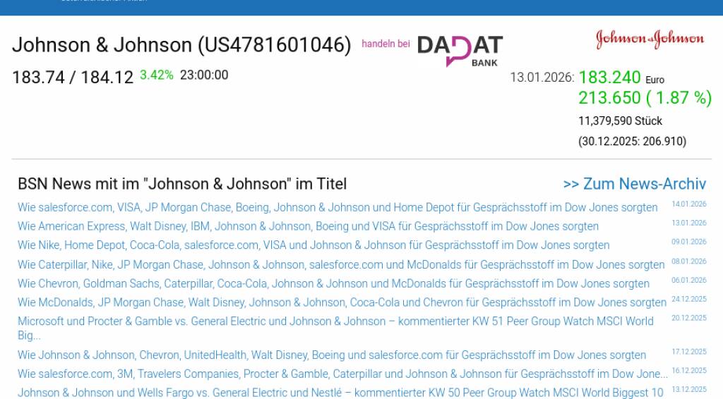 Johnson & Johnson am 13.1. 1,87%, Volumen 143% normaler Tage