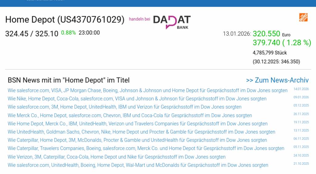 Home Depot am 13.1. 1,28%, Volumen 100% normaler Tage