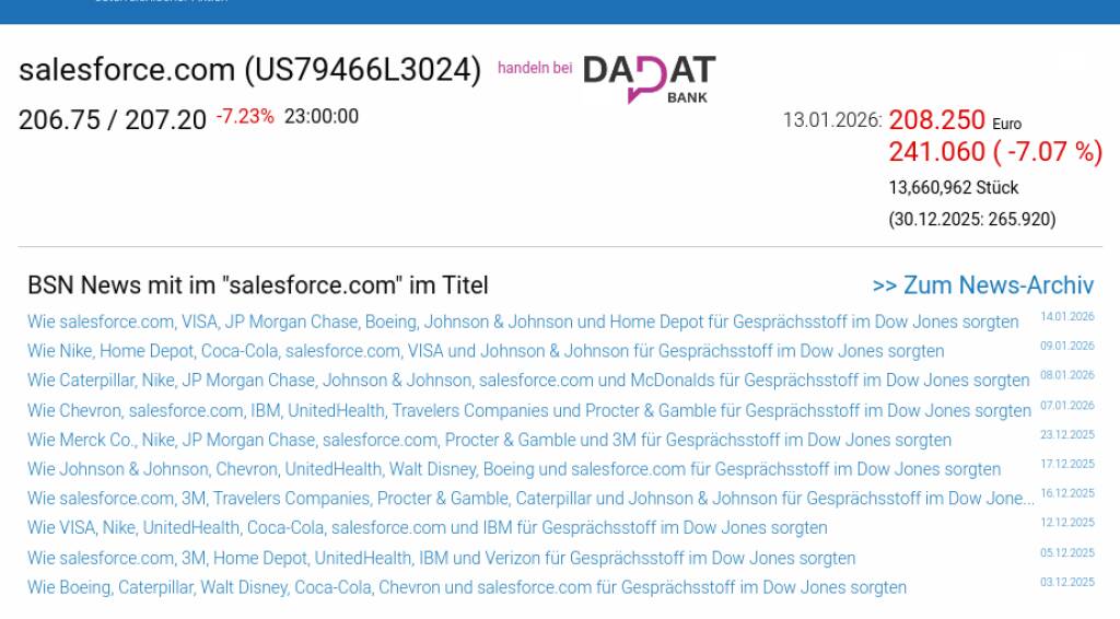 salesforce.com am 13.1. -7,07%, Volumen 203% normaler Tage
