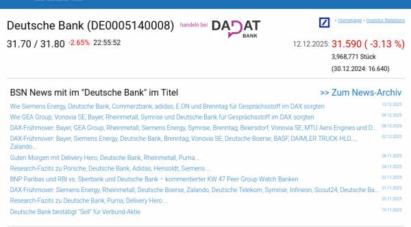 Deutsche Bank am 12.12. -3,13%, Volumen 55% normaler Tage