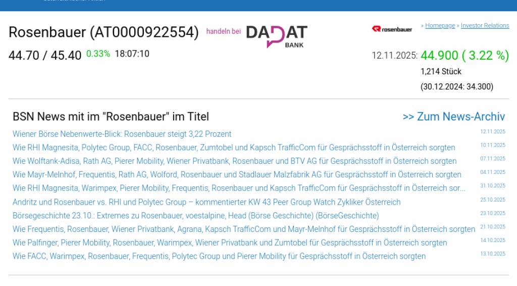 Rosenbauer am 12.11. 3,22%, Volumen 44% normaler Tage
