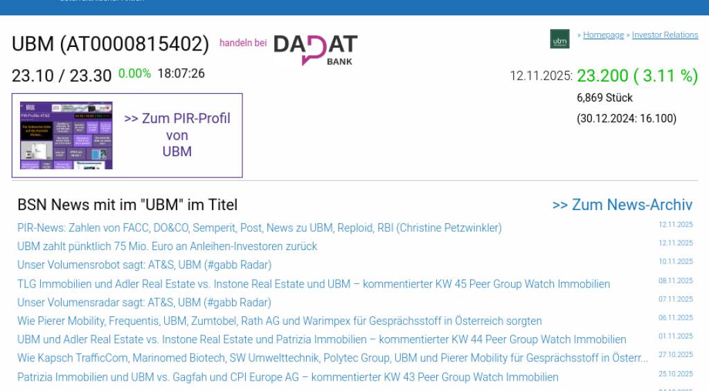 UBM am 12.11. 3,11%, Volumen 208% normaler Tage