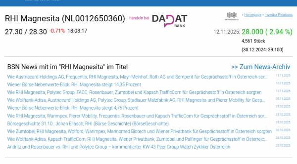 RHI Magnesita am 12.11. 2,94%, Volumen 103% normaler Tage